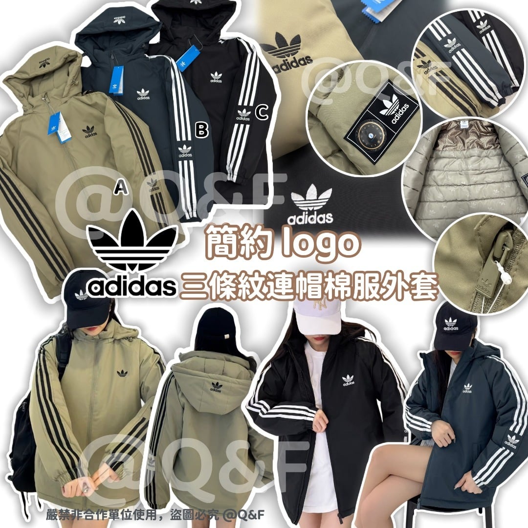 1219 Adidas 簡約 logo 三條紋連帽棉服外套 2月上旬