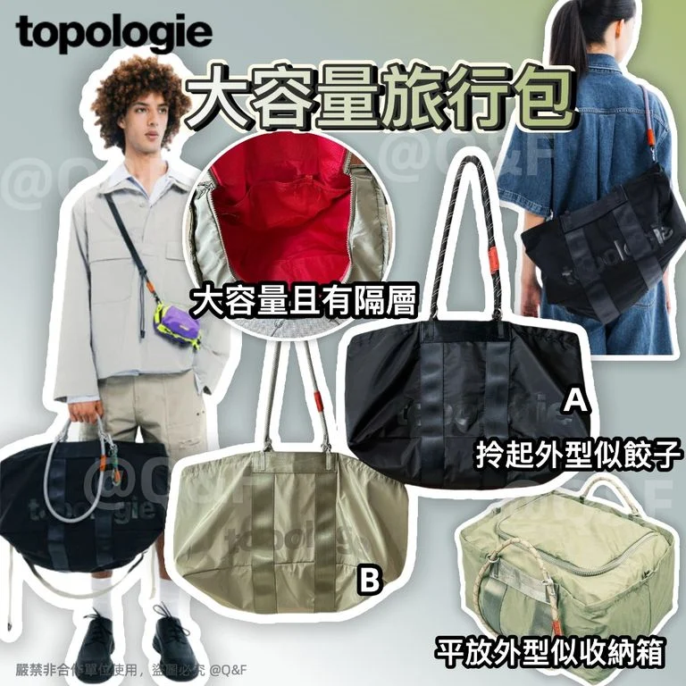 最得意嘅係佢個形狀🎒,放低喺度就好似一個細細個嘅喼咁🧳,但係你拎起佢嘅時候呢,又會變到好似個大餃子🥟,幾得意 佢個容量真係冇得彈📦,好多嘢都裝得落,仲有好多隔袋🗂️,你平時出街🚶♀️或者去 gym💪,甚至去旅行✈️都啱用