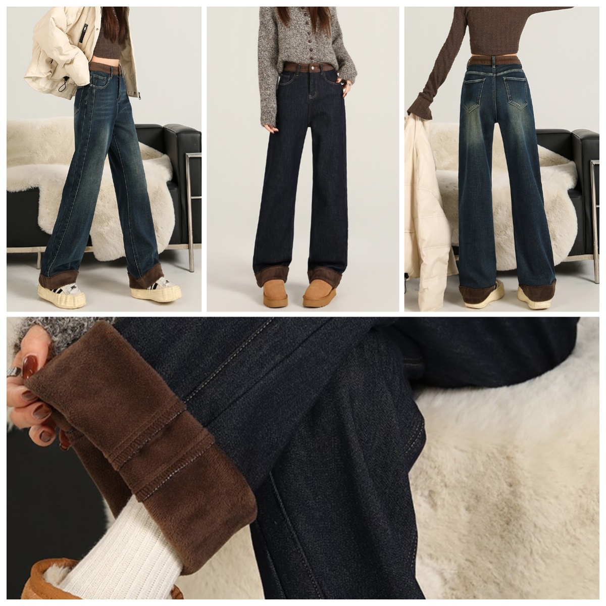 HAZ / ZYS 高腰窄版加絨闊腿牛仔褲 截單日期:12月18日 到貨日期:預計1月底 💲299 ✨ 翻邊拼接細節,突顯低調奢華 🌟 ☁️ 內里加絨卻不臃腫,貼膚舒適 😊 👖 高腰設計與闊腿剪裁,輕鬆隱藏身材缺陷 💖 👖 丹寧牛仔面料,柔軟且有型 🔄 🌈 顏色: A 深藍色 B 復古藍 📐size (cm) : S : 腰圍63 長褲100 M : 腰圍67 長褲101 L : 腰圍71 長褲102 XL : 腰圍75 長褲103 2XL : 腰圍79 長褲104 3XL : 腰圍83 長褲105 🌸材質:牛仔 聲明: * 貨品為平行進口貨/outlet貨,非專賣店購入,請介意者慎重考慮。 * 人手量度有機會1-3cm左右誤差屬正常 * 顏色可能會因網頁呈現與拍攝關係產生色差,圖片僅供參考,實物為準。