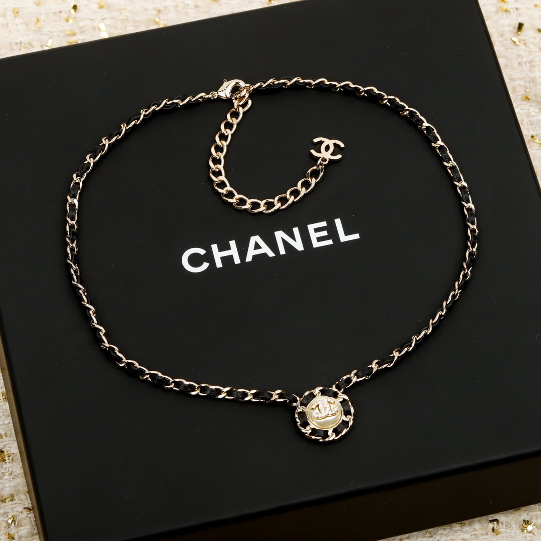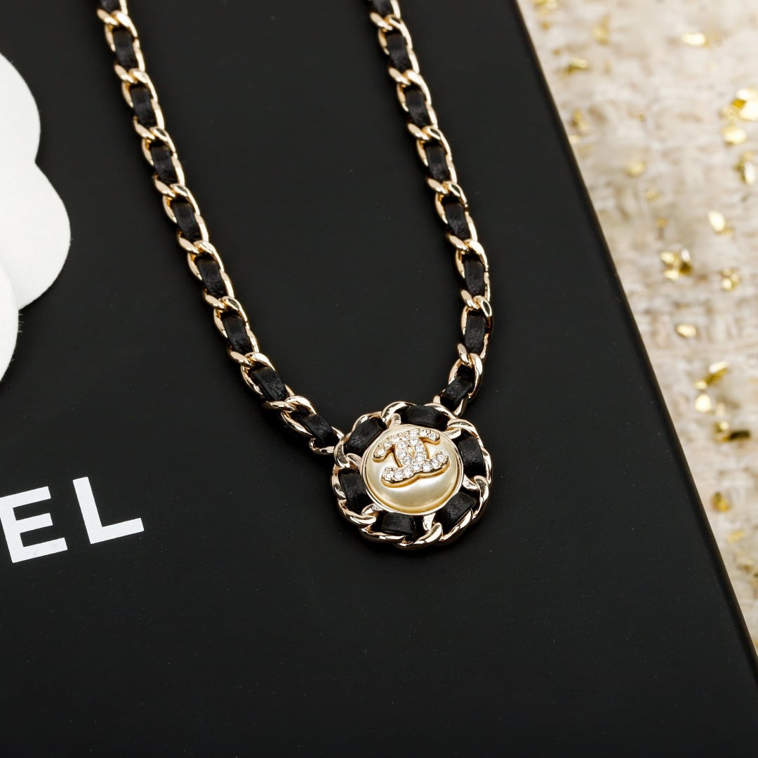 1223 CHA**NEL 圓形珍珠穿皮項鍊 連禮盒⭕原單⭕2月頭