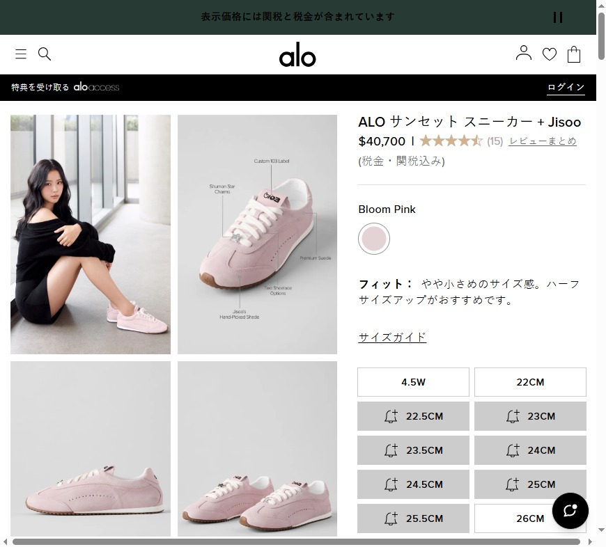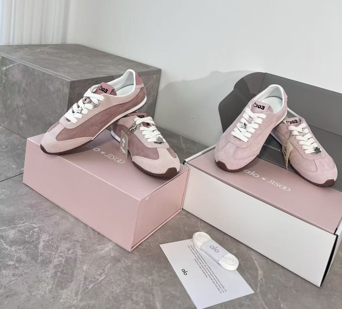 1230 Alo X Jisoo Bloom Pink 麂皮運動鞋 全套原標原盒 2月中