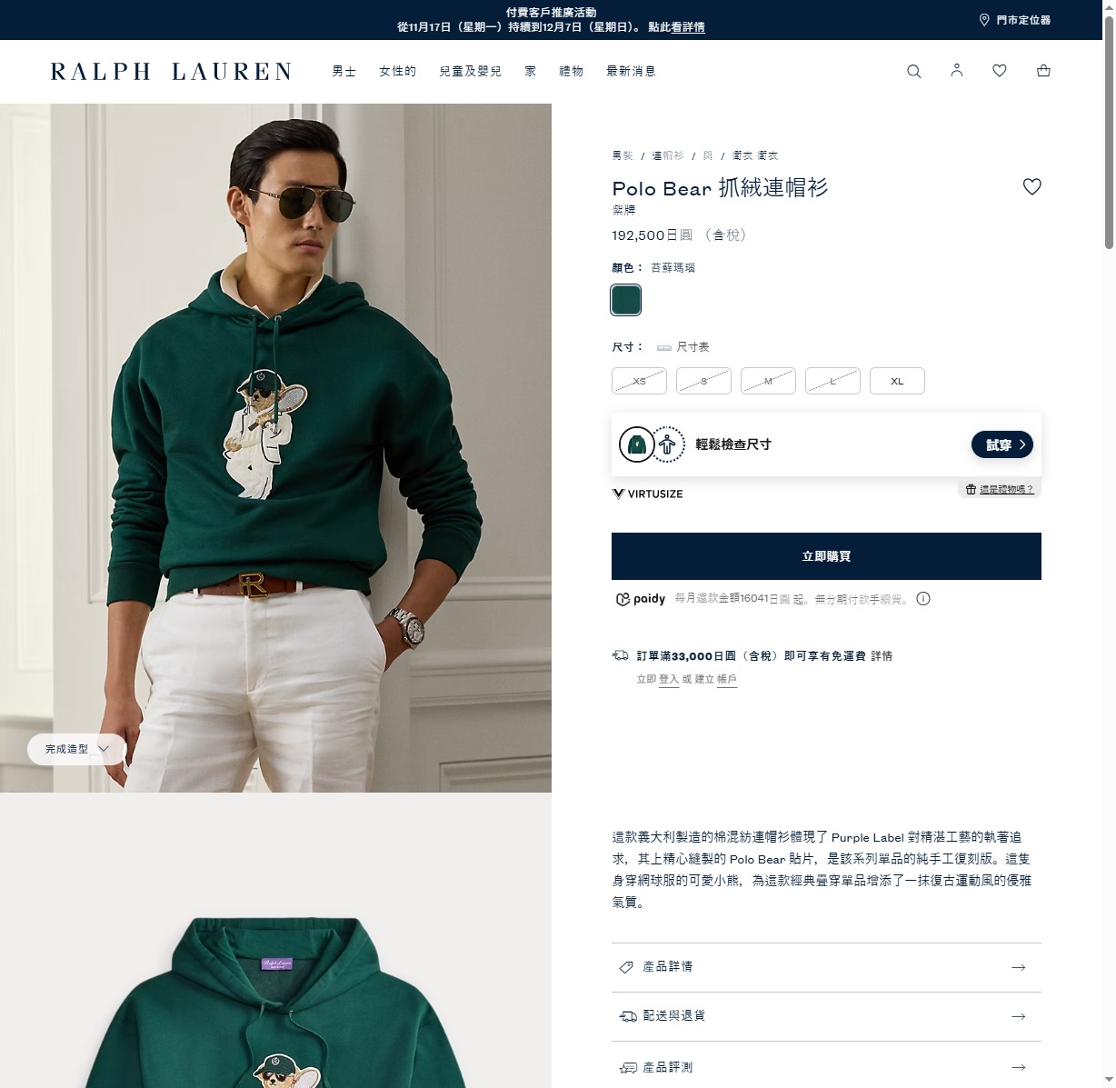 1230 Ralph Lauren Polo Bear 抓絨連帽衫 2月中